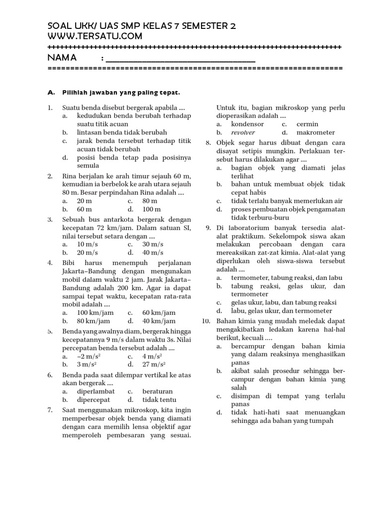 Soal ukk ini untuk referensi belajar peserta didik kelas 7 smp mts dalam menghadapi ukk (pat). Di dalam kurikulum 2013 ada. Jumlah soal seni budaya ini adalah 50 butir soal, berbentuk soal pilihan ganda. Berikut ini soal ukk/pat bahasa indonesia smp/mts kelas 7 kurikulum 2013 , sudah dilengkapi dengan kunci jawaban sehingga tinggal dikembangkan dan sesuaikan dengan pembelajaran di tempat sekolah masing masing. Semoga bermanfaat dan bisa dimanfaatkan untuk kepentingan siswa dan guru kelas 7 tentunya. Oleh kelaspjokdiposting pada juli 26, 2020agustus 15, 2020. Dibawah ini saya coba membuat soal untuk latihan siswa kelas 7 mts. Soal uas bahasa sunda kelas x xi xii semester 1 ganjil. Soal ukk pjok kelas 5deskripsi lengkap. 1393/c3/ds/2008 tanggal 09 september 2008 jl. Sebagaimana di ketahui istilah ulangan kenaikan kelas (ukk) sekarang sudah diganti dengan pat atau penilaian akhir tahun. Fail kunci jawaban ukk bahasa inggris kelas 7 tahun ajaran 2015/2016 1. Periksa dan bacalah soal dengan teliti sebelum anda bekerja 3.