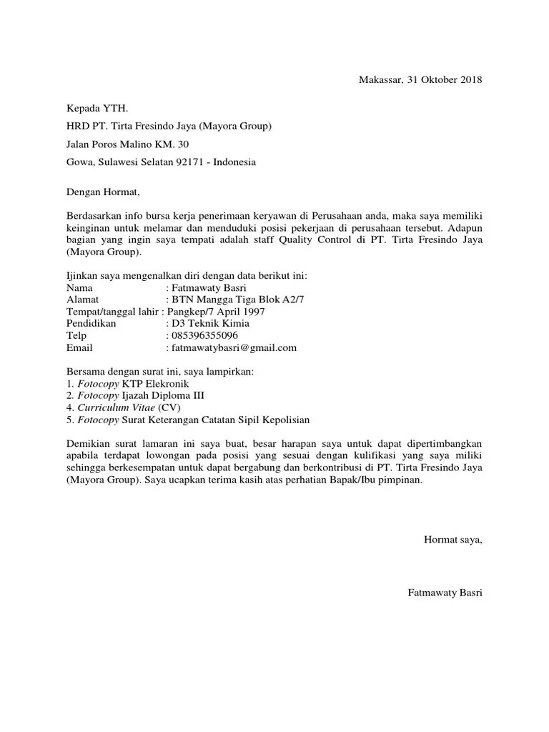 Download 7 Surat Lamaran Pekerjaan Pt Mayora